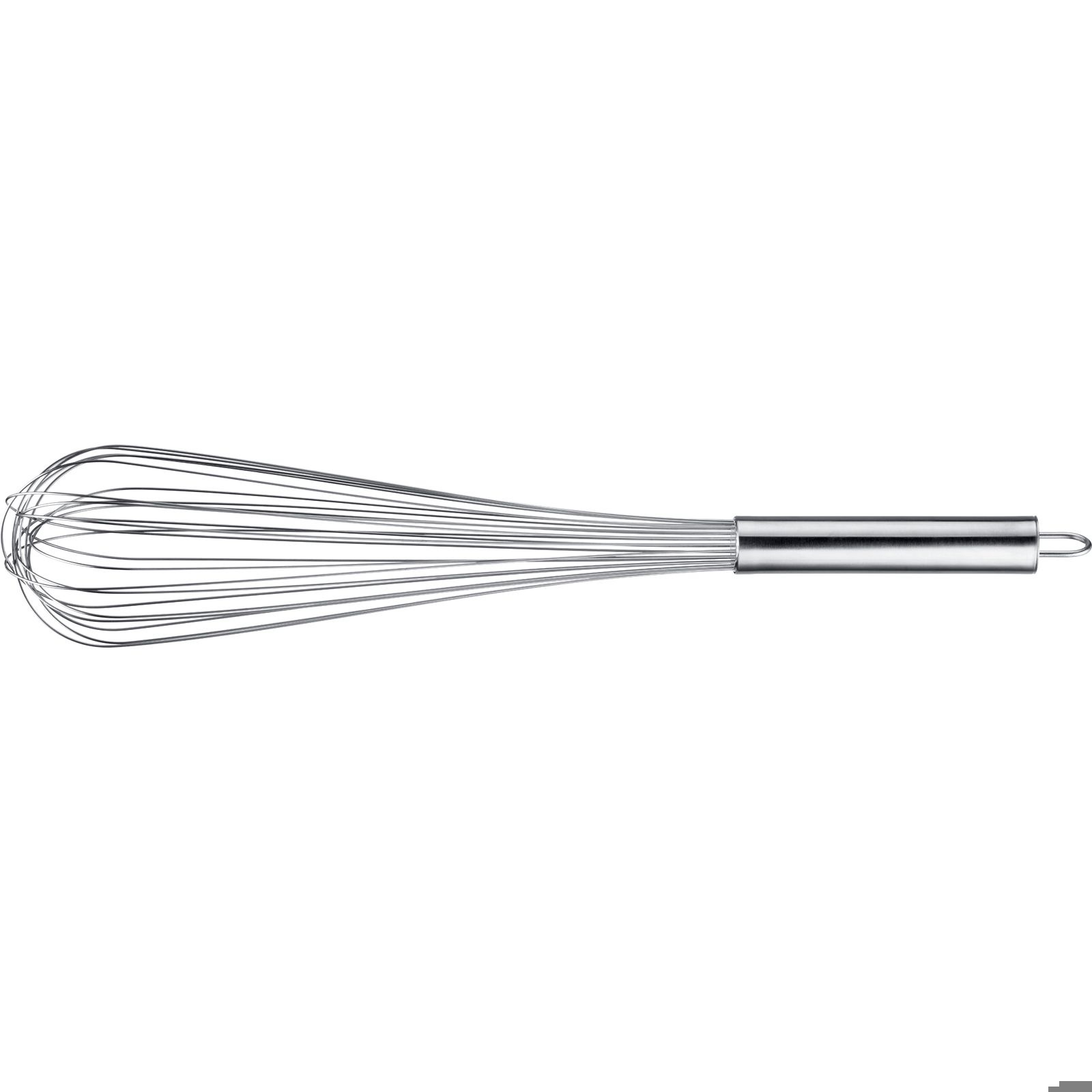 Visp i rostfritt stål med flexibla trådar för effektiv och luftig vispning. Utrustad med vattentätt handtag och upphängningsögla. Passar för professionella kök och tål diskmaskin.
