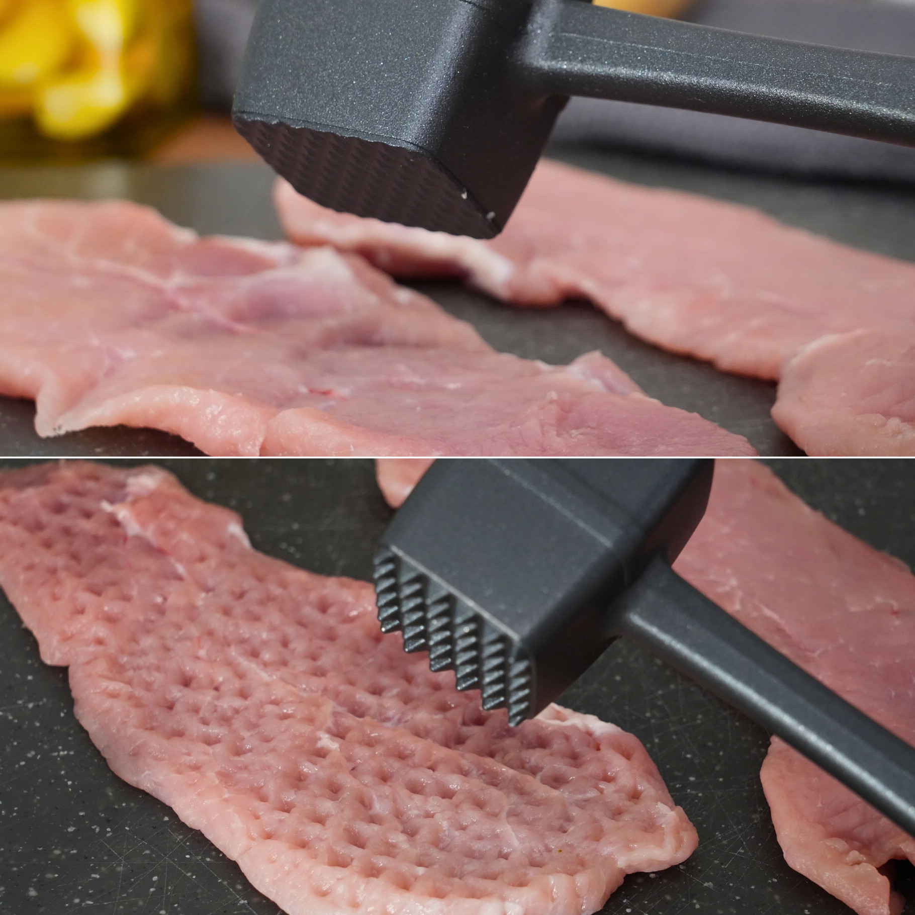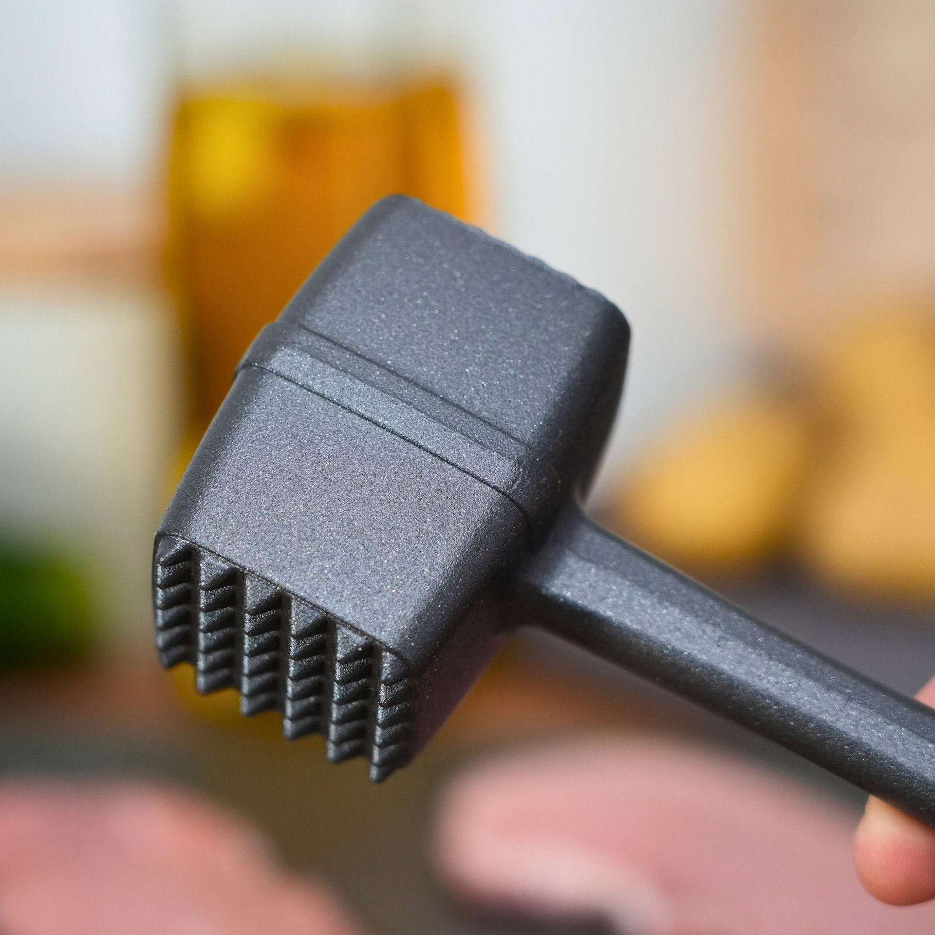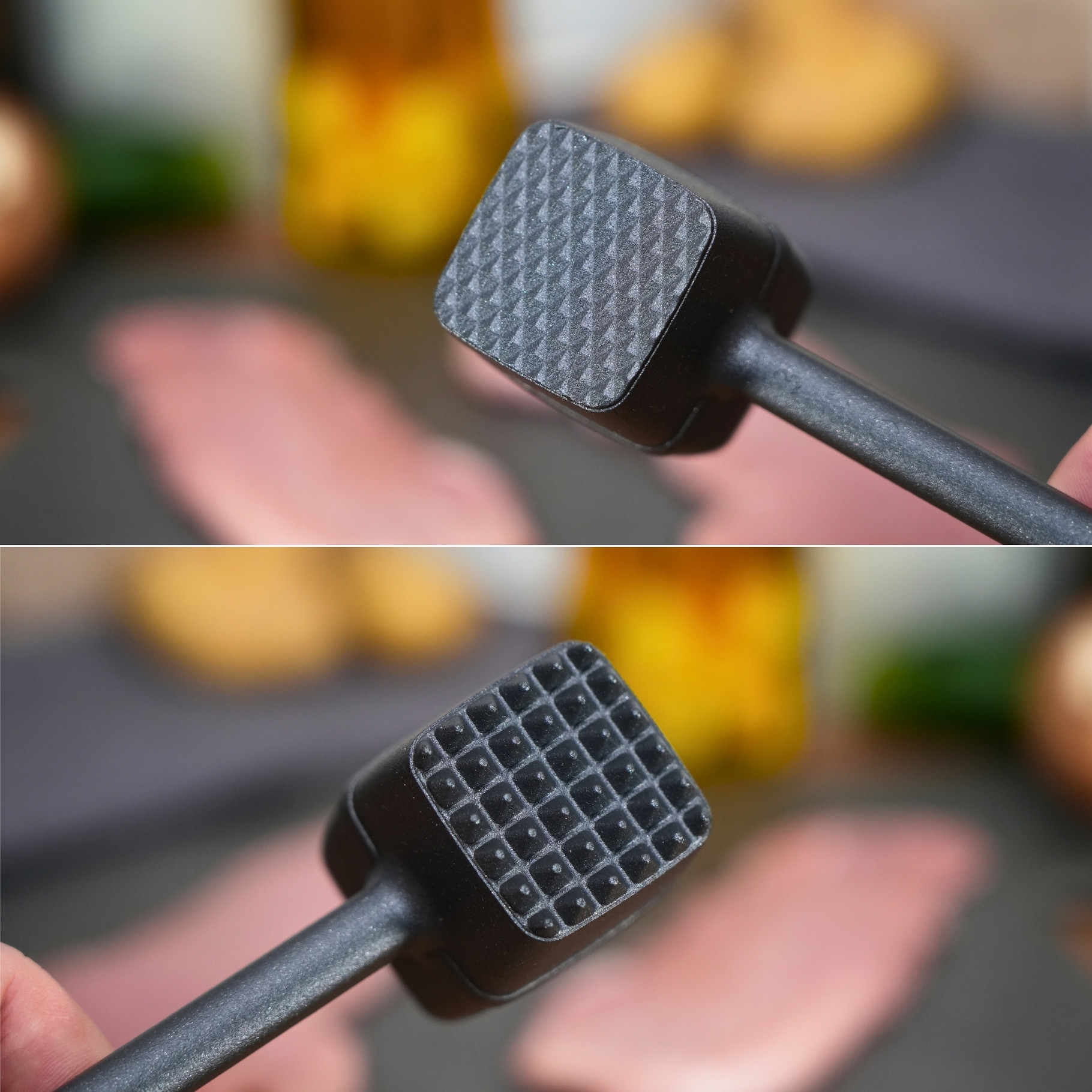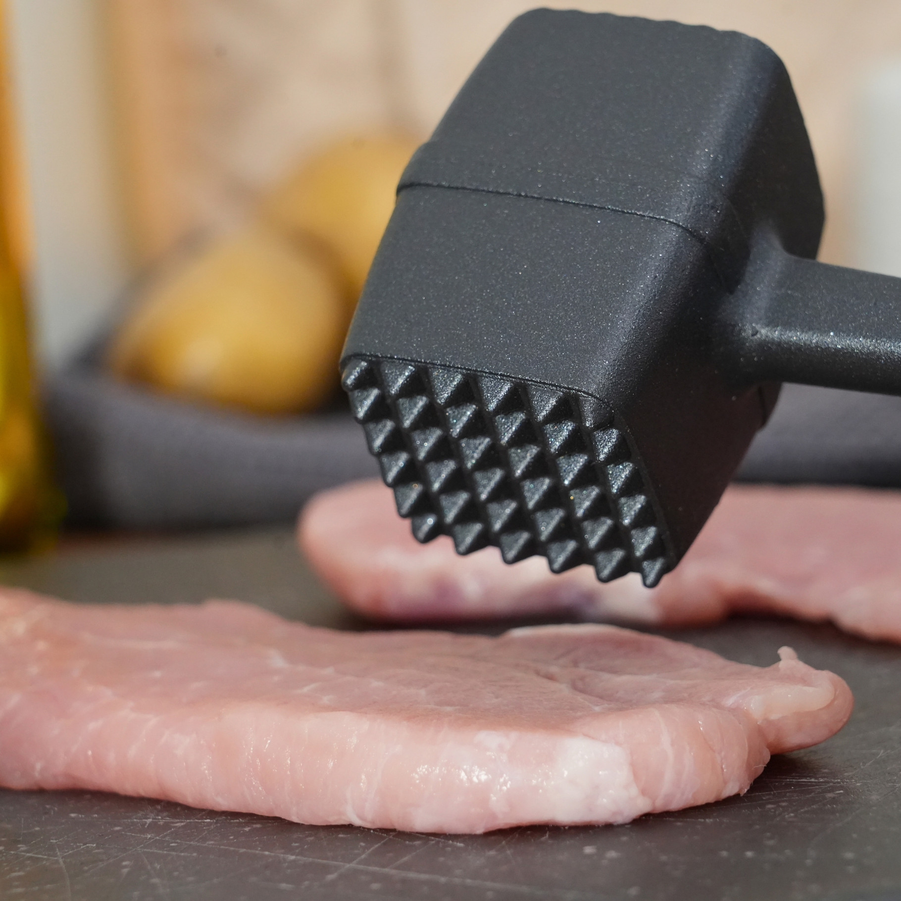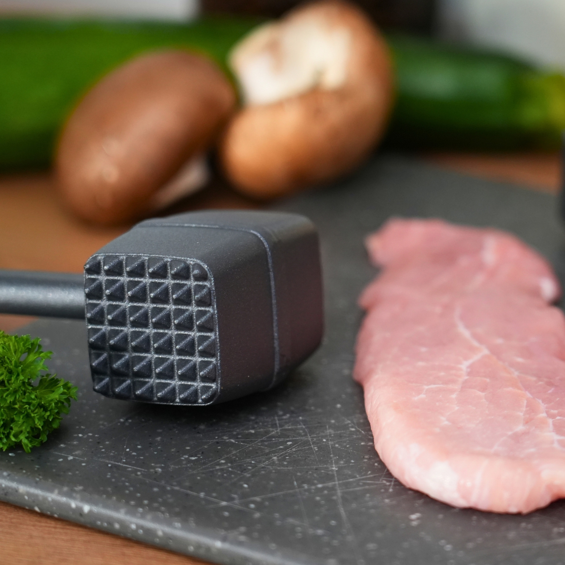Kraftig köttklubba med greppvänlig yta och extra tung konstruktion. Utrustad med två olika slagytor – en fin för att platta till kött utan att skada fibrerna och en grövre för mer kraftfull bearbetning. Passar både professionella kök och hemmabruk.