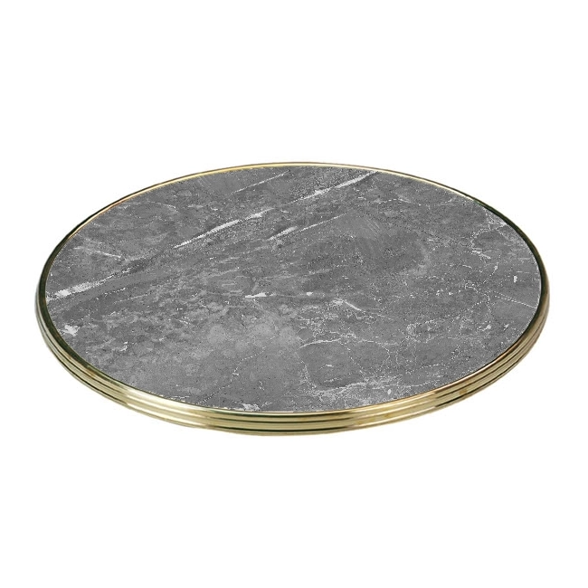 Bordsskiva med marmormönstret Marbre de Sicile och dekorativ mässingskant. Anpassad för utomhusbruk och passar perfekt för café- och bistro miljöer.