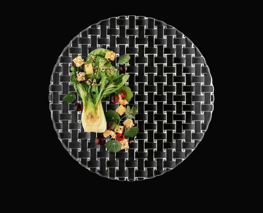 Elegant tallrik i kristallglas från Nachtmanns serie Bossa Nova. Den dekorativa korgvävda strukturen ger en stilfull presentation och passar perfekt för servering vid middagar och bufféer. Diskmaskinssäker.
