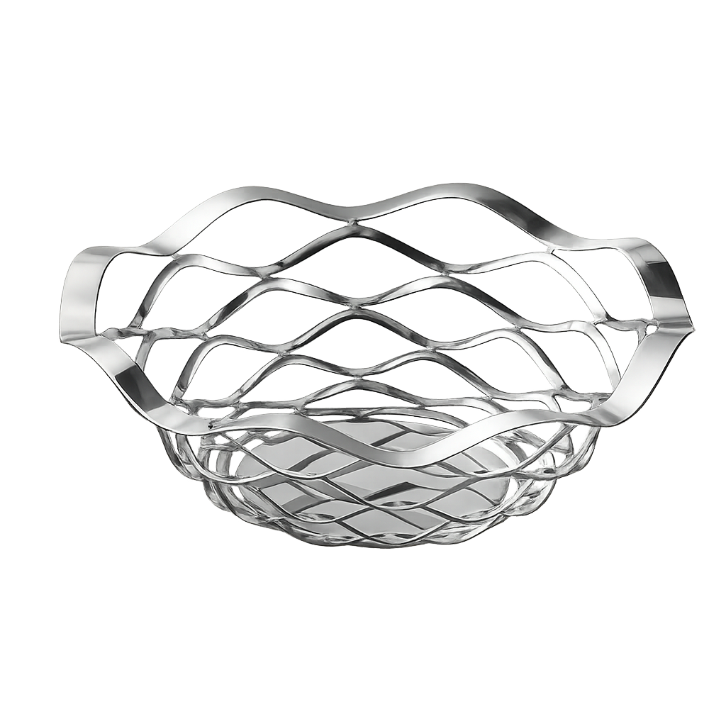 Brödkorg i metall med öppen och luftig design som ger en tydlig och inbjudande presentation. Perfekt för servering av bröd, småfrallor eller snacks. Den silverfärgade finishen ger ett modernt uttryck och passar i både restaurang- och café miljöer.