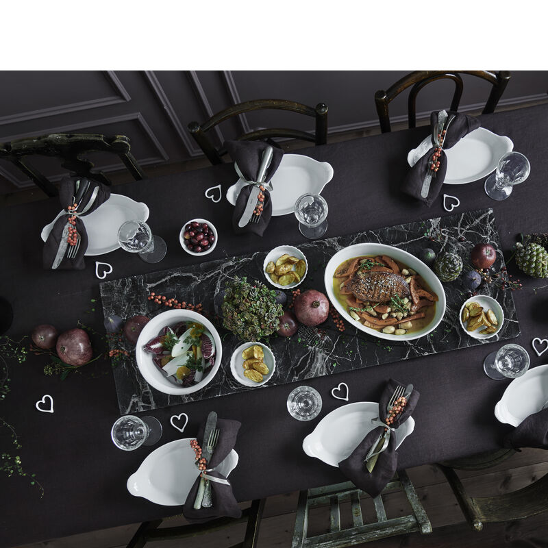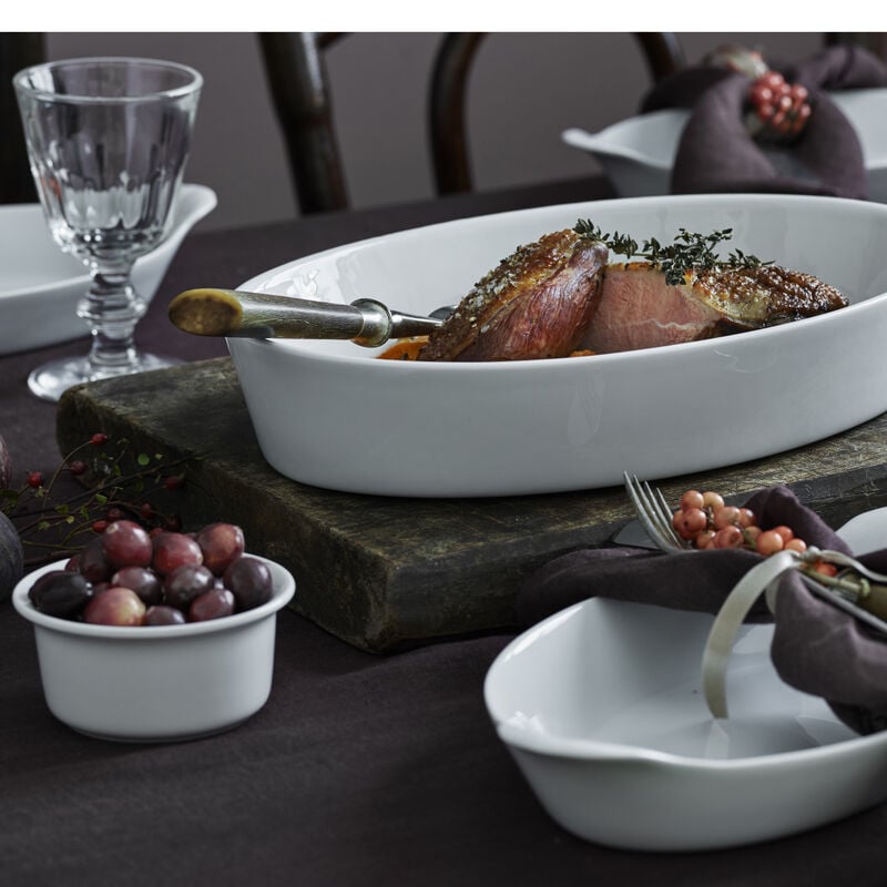 Detta ovala fat från Pillivuyt mäter 26 x 19 cm och passar utmärkt för alla ugnsrätter, bakning och stekning. Porslinet är extremt tåligt mot slag och klarar en termisk chock från -30°C till +350°C, vilket gör att du kan flytta det direkt från frys till varm ugn. Fatet har även den fördelen att det absorberar och fördelar värme optimalt, vilket håller maten varm länge.