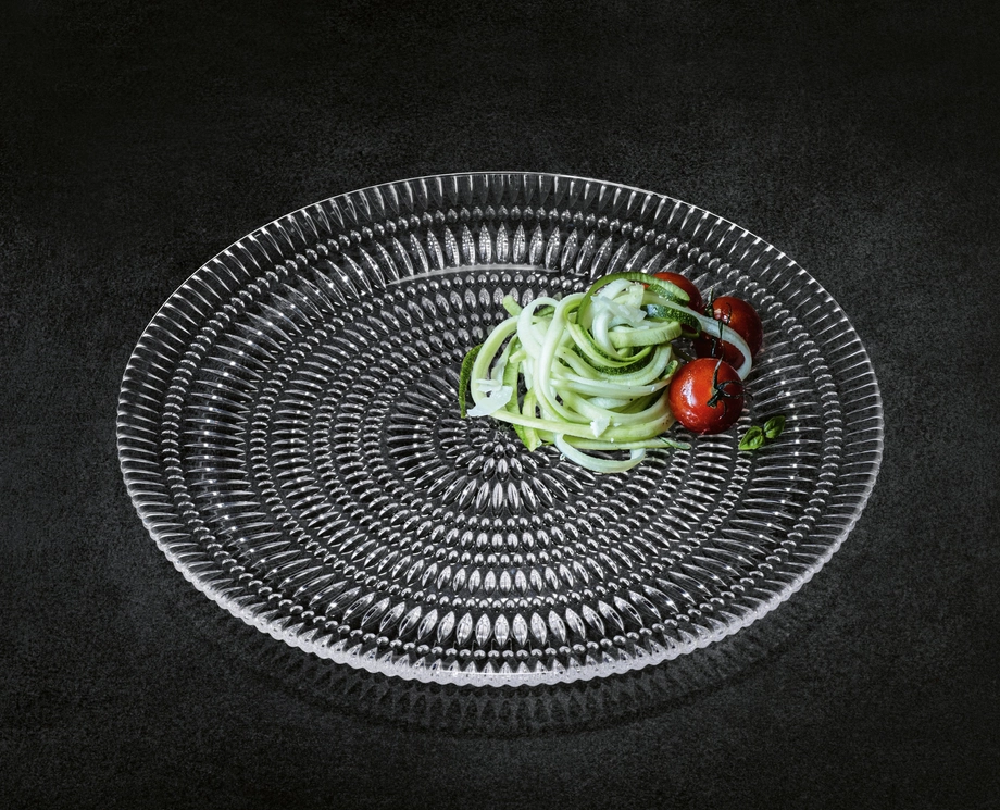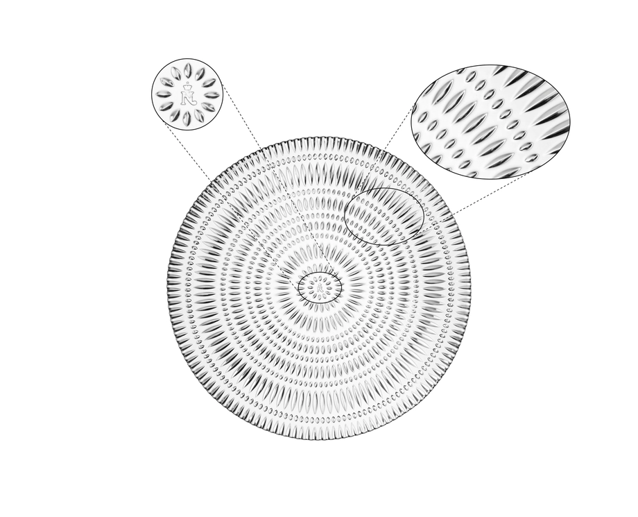 En elegant tallrik i högkvalitativt, maskintillverkat kristallglas. Designen är inspirerad av modern arabesk och ger lyxig presentation av rätter.