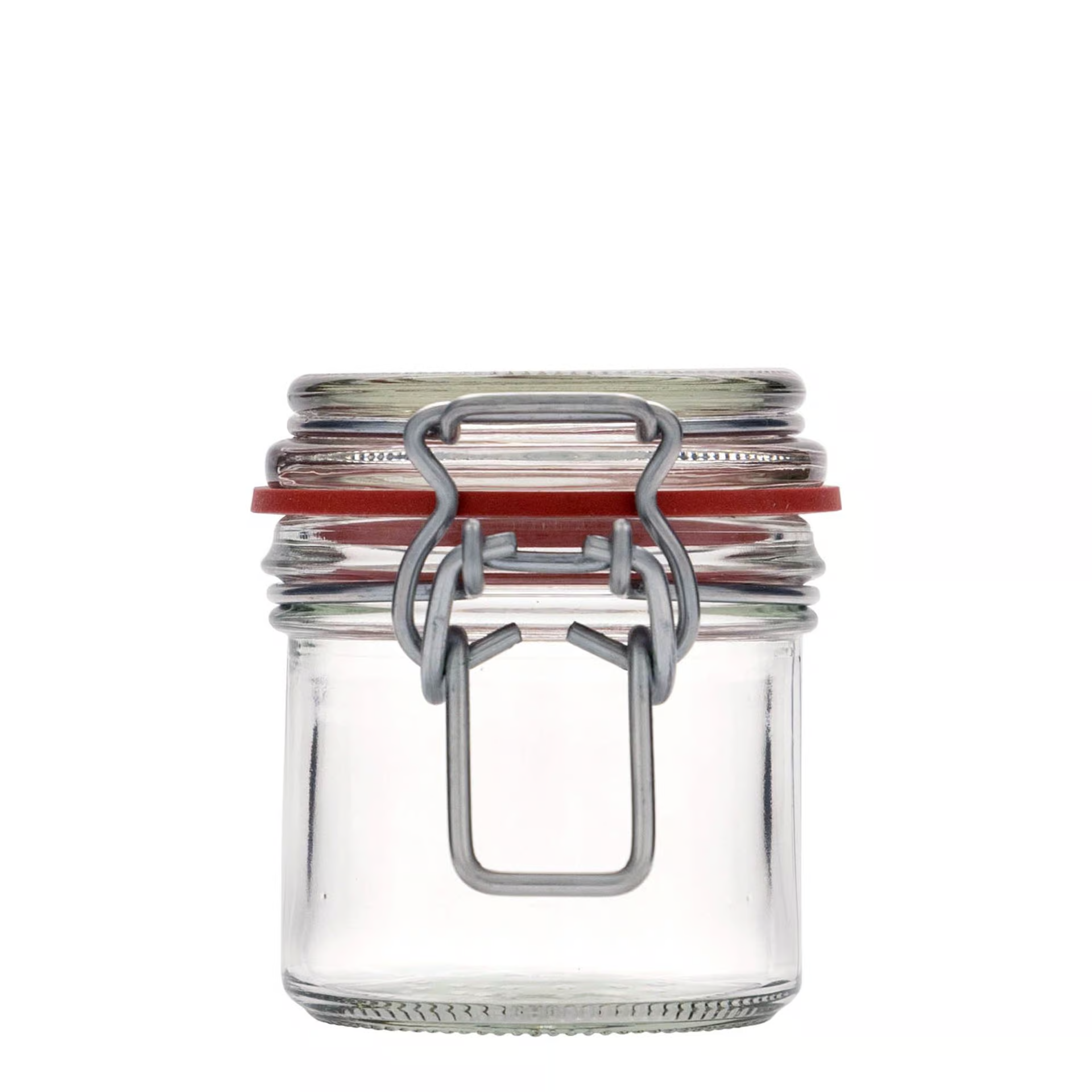 G9387Denna klassiska glasburk med trådbågsstängning rymmer 125 ml och levereras komplett med glaslock och gummiring. Den är tillverkad i klart glas och passar utmärkt för konservering.