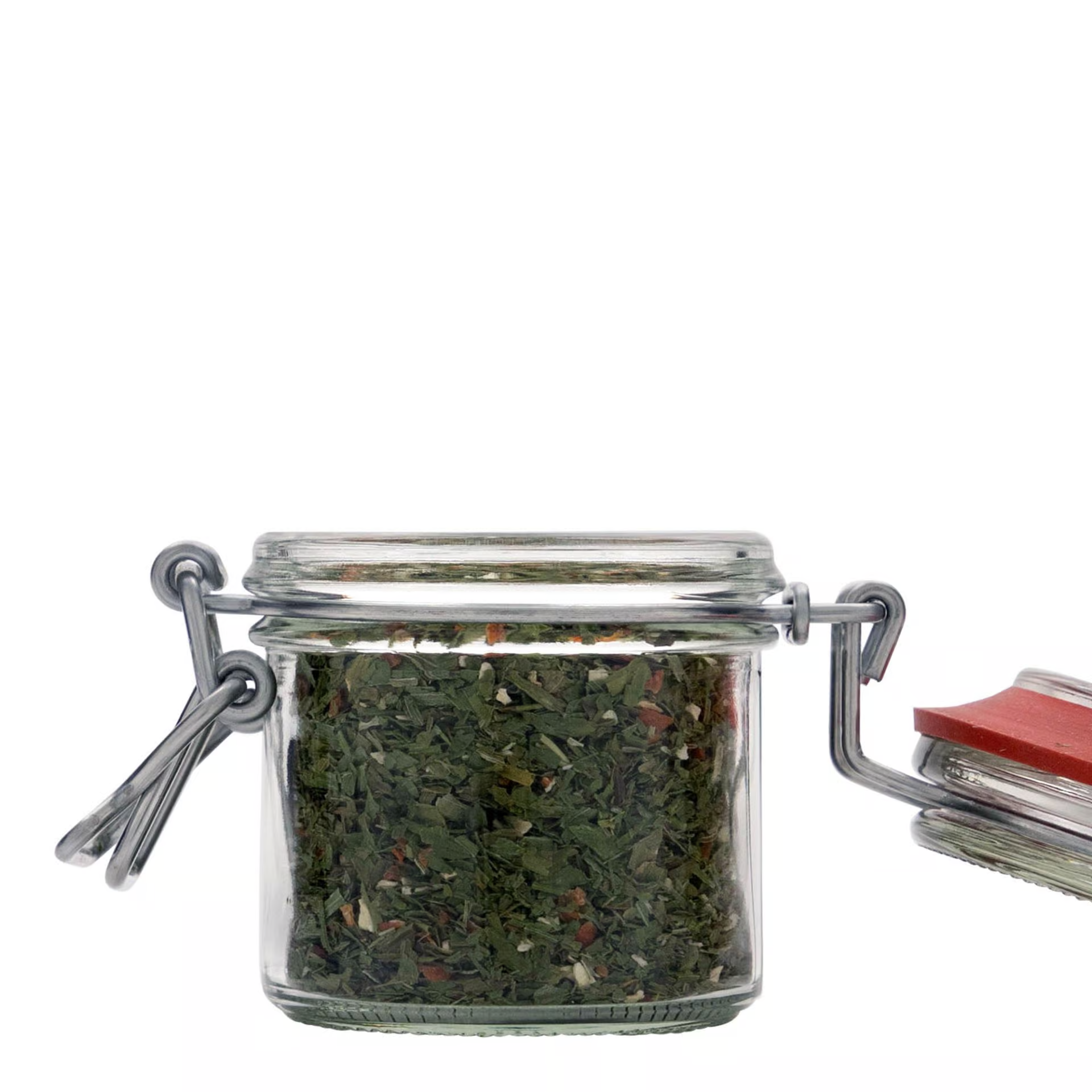 Denna klassiska glasburk med trådbågsstängning rymmer 125 ml och levereras komplett med glaslock och gummiring. Den är tillverkad i klart glas och passar utmärkt för konservering.