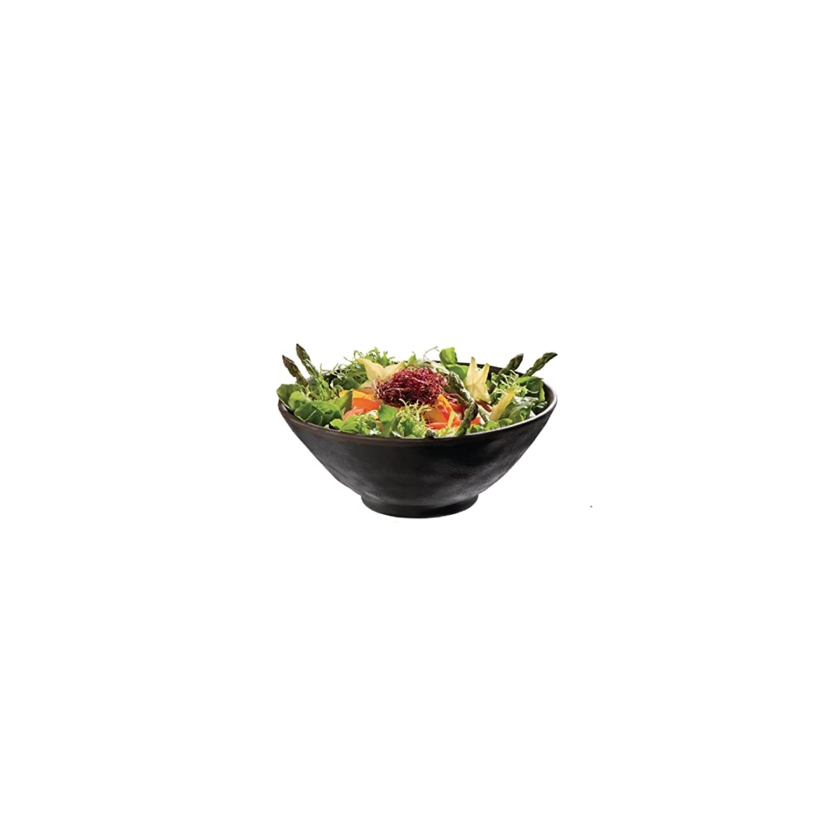 Skål i melamin med mörka nyanser i svart och brunt som ger ett naturligt och jordnära uttryck. Passar perfekt för tillbehör, mindre sallader eller servering på buffé.