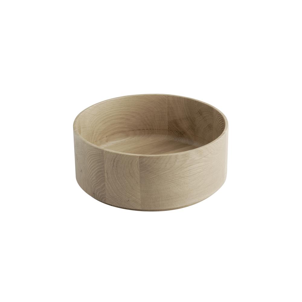 Skål i trä med naturligt uttryck och generös form. Passar för servering av sallader, frukt eller bröd. Ytan är avtorkningsbar för enkel rengöring i daglig användning.