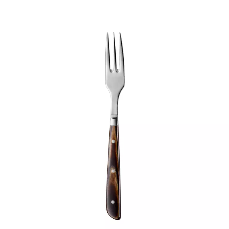 B5013Stekgaffeln TAURUS har ett mörkt, träliknande handtag av plastkomposit och är tillverkad i rostfritt stål. Gaffeln är cirka 212 mm lång och är diskmaskinsäker.