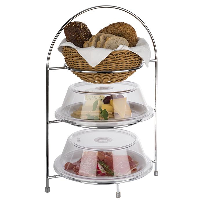 S33220Serveringsställ i kromat metall för upp till tre tallrikar (max Ø 27 cm, innercirkel Ø 18 cm). Praktisk och stilren lösning för servering och presentation.