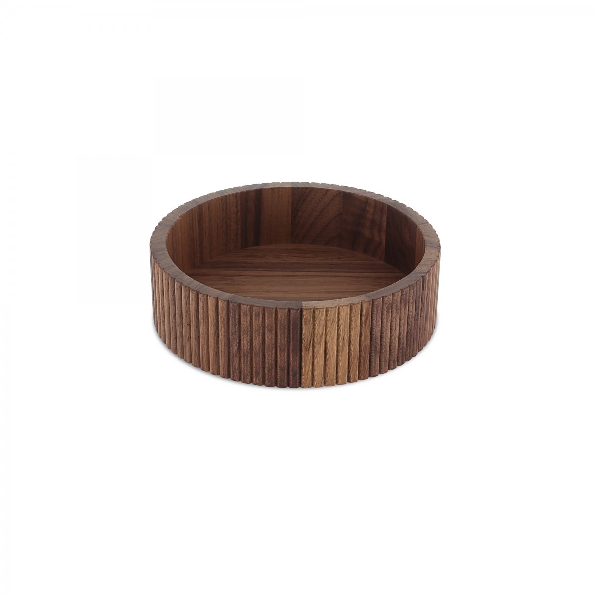 Snygg korg i massivt valnötstträ med rund form och naturlig finish. Perfekt för bröd, frukt eller dekorativ servering.