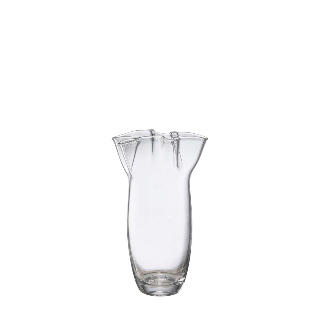 I20250En vas i klart glas, 38 cm hög, med mjukt böljande kant. Passar för både färska blommor och som dekorativ detalj. Ger ett enkelt och tidlöst uttryck i hemmet.